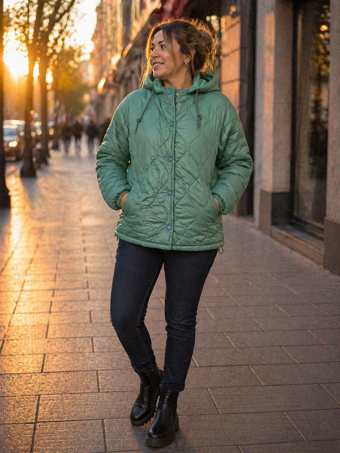 Este prenda es esencial para quienes buscan over, estilo y distinción en los días fríos. Confeccionado en sylver satinado, este camperón puffer se destaca por su acabado sofisticado y suave al tacto, brindando un look moderno y elegante