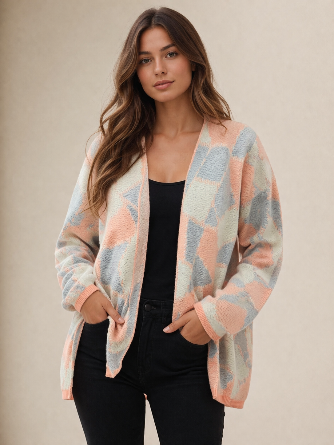 Saco tejido de diseño suave y femenino, con un delicado mix de tonos pastel que combinan a la perfección entre sí. Su calce relajado y levemente suelto lo hace súper cómodo y versátil. El largo, que llega justo a la altura del bolsillo del jean, estiliza la figura y lo convierte en una prenda fácil de combinar tanto con looks casuales como más armados.